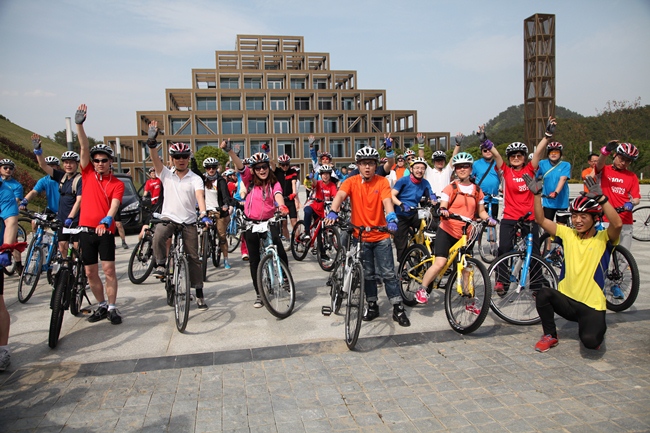 4月13日下午,“单车上的美丽中国”活动千岛湖站在宝运莱进贤湾项目桥头堡——游客接待中心喷泉广场正式鸣哨起行。这是宝运莱进贤湾游客接待中心建成后承办的首次宣传与推广活动。著名媒体人3G门户网总裁张向东、阿里巴巴副总裁王帅、腾讯网总编辑陈菊红、土豆网创始人王薇、MSN中国区总经理刘振宇等72位骑行爱好者参加了从宝运莱进贤湾游客接待中心到姜家龙川湾公园的环湖骑行活动。